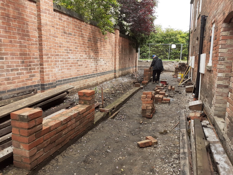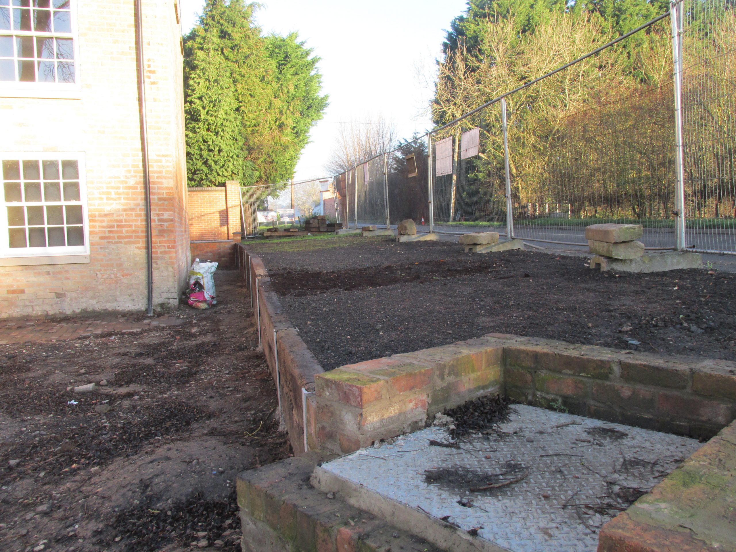- Outside, the landscaping has been completed with railway sleepers used for retaining walls. The outbuildings have been rebuilt, using reclaimed bricks left over from the main building rebuild. The car park has been completed and finished with permeable asphalt, which allows rainwater to soak away. The car park lighting has been installed.