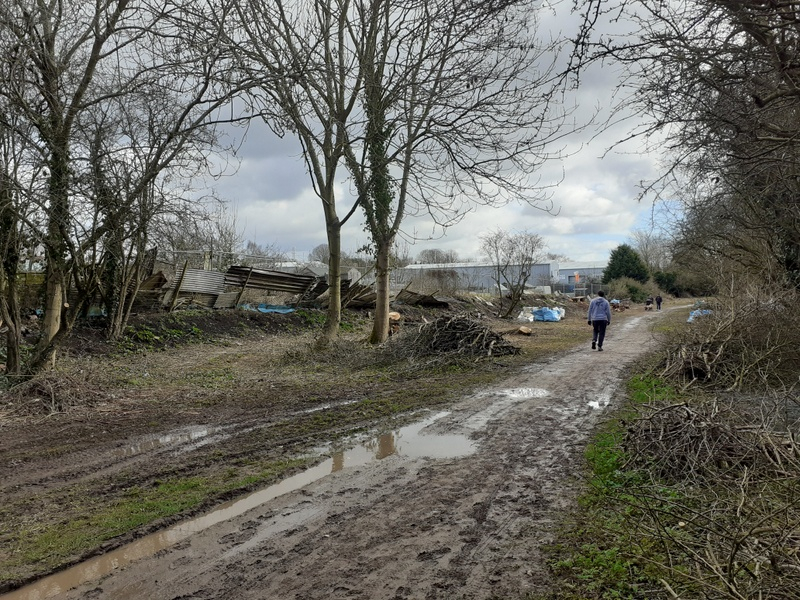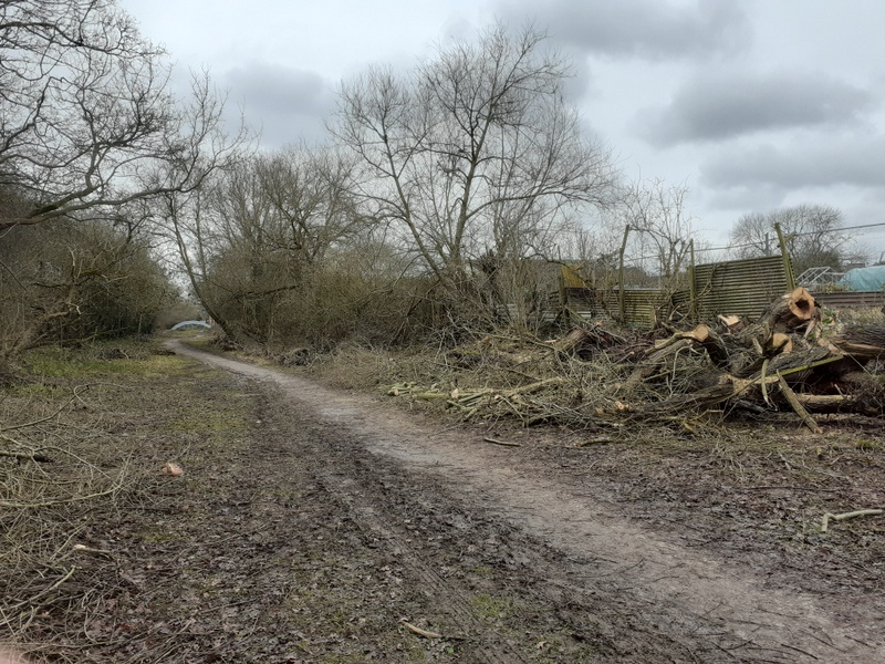 Spondon – At Spondon the dug out canal is now complete and is just awaiting for the grass to grow. Between the restored canal and Anglers Lane in Spondon, a small team have been working to make safe a couple of rotten cracked willow trees, that threatened to fall into Barrowfield Allotments. They have made various discoveries of rubbish that has been dumped in the hedge bottom including platform shoes (not matching) and a Boots / Pepsi alarm clock? Roger, Chris Shaw and Keith have done a brilliant job in safely removing the trees, while social distancing, and trying to tidy the site to allow the plants and grass to grow where there was just rubbish and brambles.
