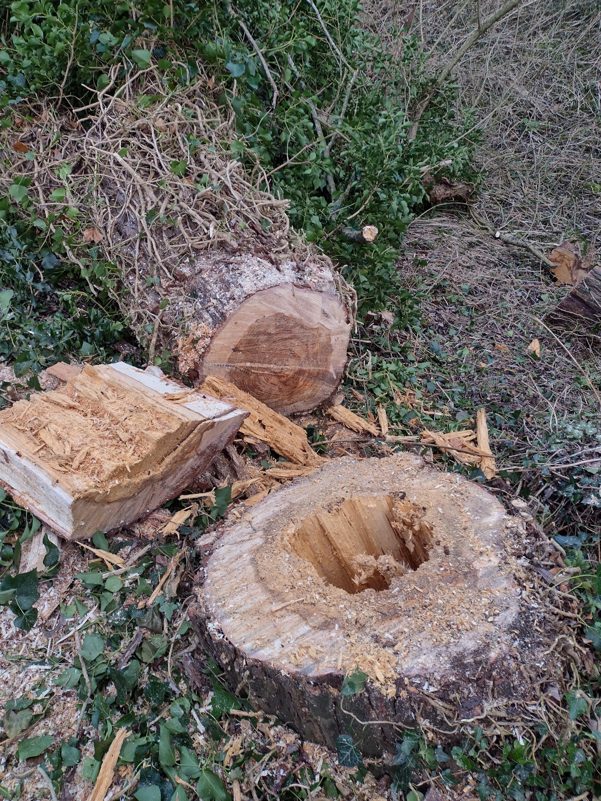 The final image shows shows one of the trees that has been removed with its rotten core which would have left it susceptible to falling.