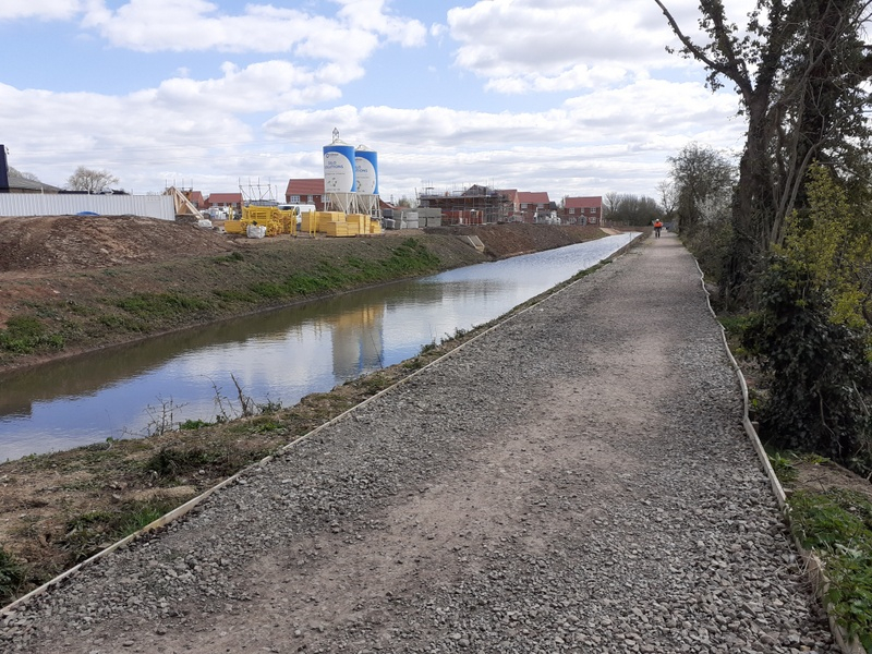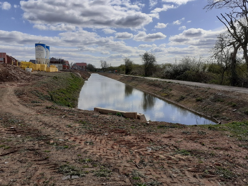 In Spondon, a developer (Wheeldon Brothers) has begun to build more than a hundred houses on a large plot adjacent to the canal. By building a section of canal, the developer has reduced the required cost of building a balancing tank to deal with rainwater flooding. Likewise by using the canal land as part of the “leisure” provision they can sell properties close to the canal at a premium, thereby generating more profit. Thus they have provided the Trust with a “free” section of canal.