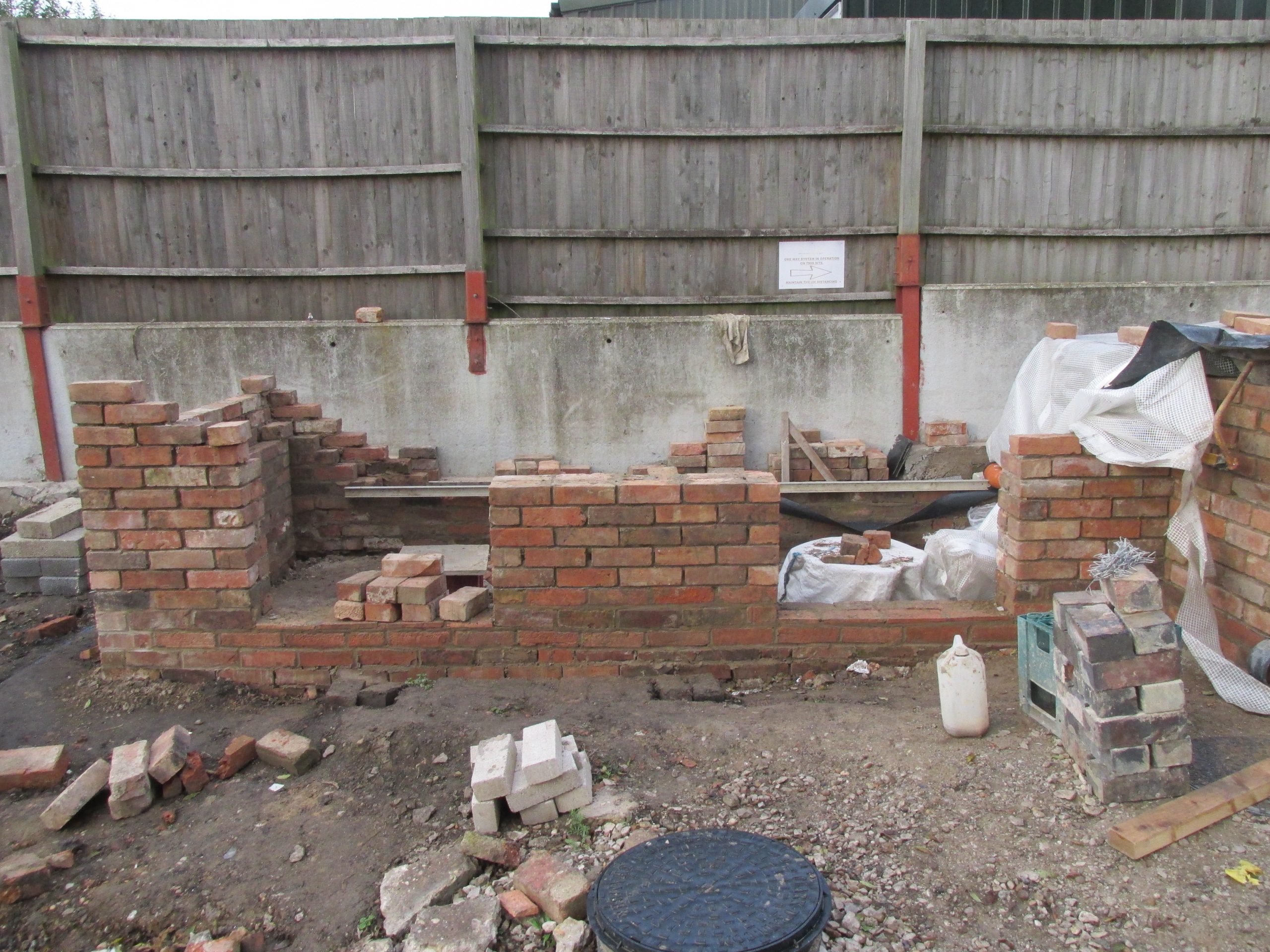 The site has now been cleared and leveled to allow for the completion of the car park in mere weeks.  The railway sleeper retaining walls are in place around the perimeter, and a number of short walls have been built that already give the site more definition. The heritage toilet block is nearly complete, and the “working” toilet block foundations have been laid and the walls are taking shape.