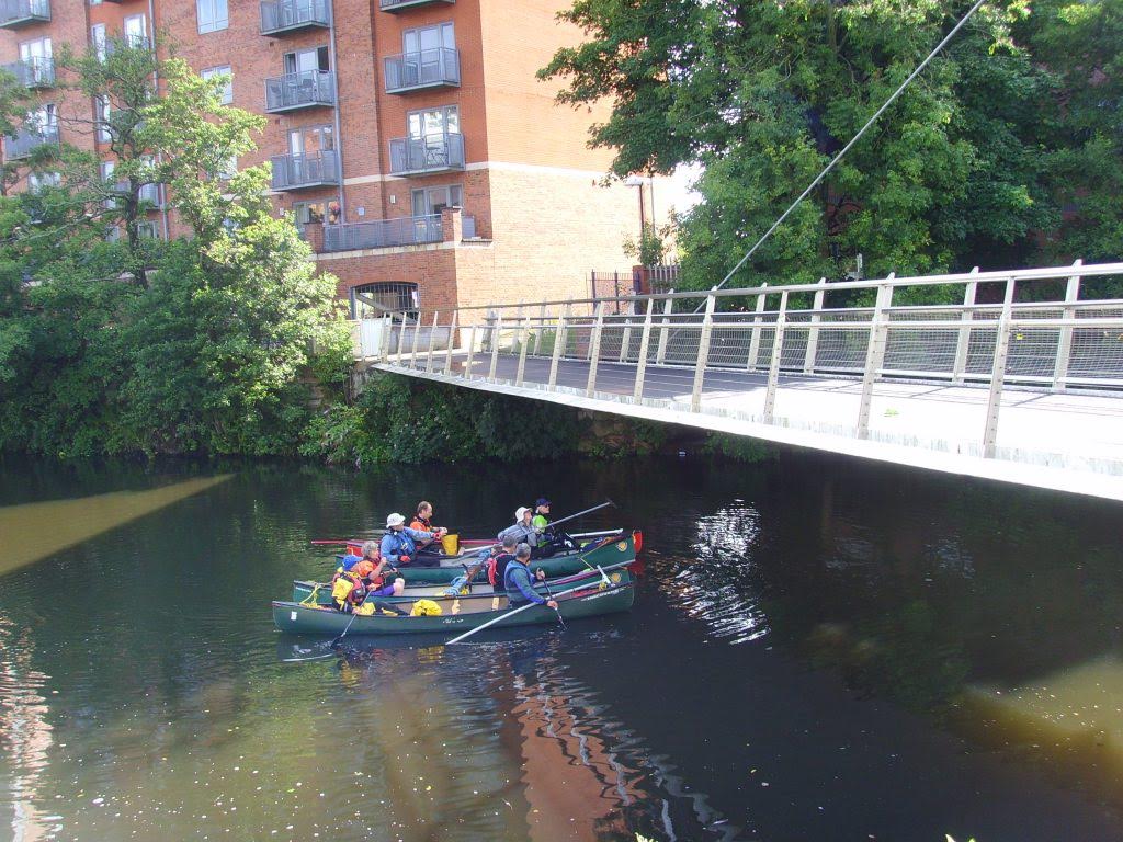 2: Derwent Depth Survey – An initial depth survey has been undertaken between the Silk Mill and Pride Park on the Trust’s behalf by volunteers from Midland Canoe Club with Trust volunteers undertaking the recordings. The Midland Canoe Club volunteers strapped four two person canoes side by side to represent the width of a typical river vessel and paddled down river to measure the depth at various points.