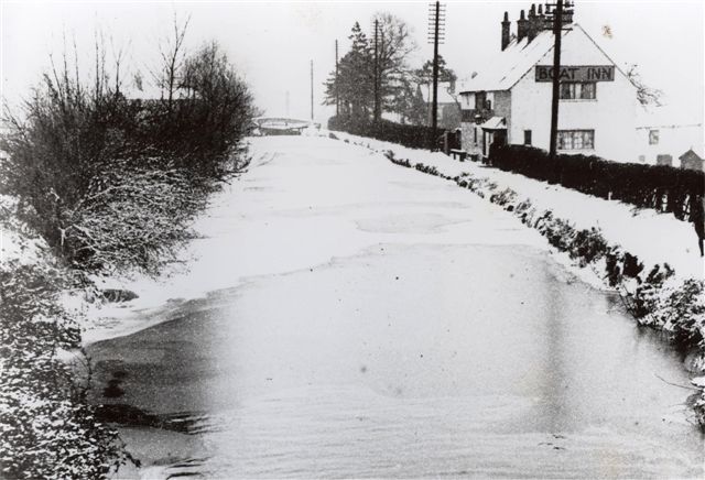 During the day we were able to tell many visitors to the display our plans to submit an application to the Heritage Lottery Fund to restore the 750m stretch of canal from the Junction with the Erewash at Lock Lane through to Sandringham Road. Many visitors were fascinated by the picture of the Boat Inn and the canal frozen over. The picture below was taken from the Top Lock looking down the canal towards Lock Lane. The remains of the Boat Inn can be seen in the hedgerow adjacent to the the allotments.