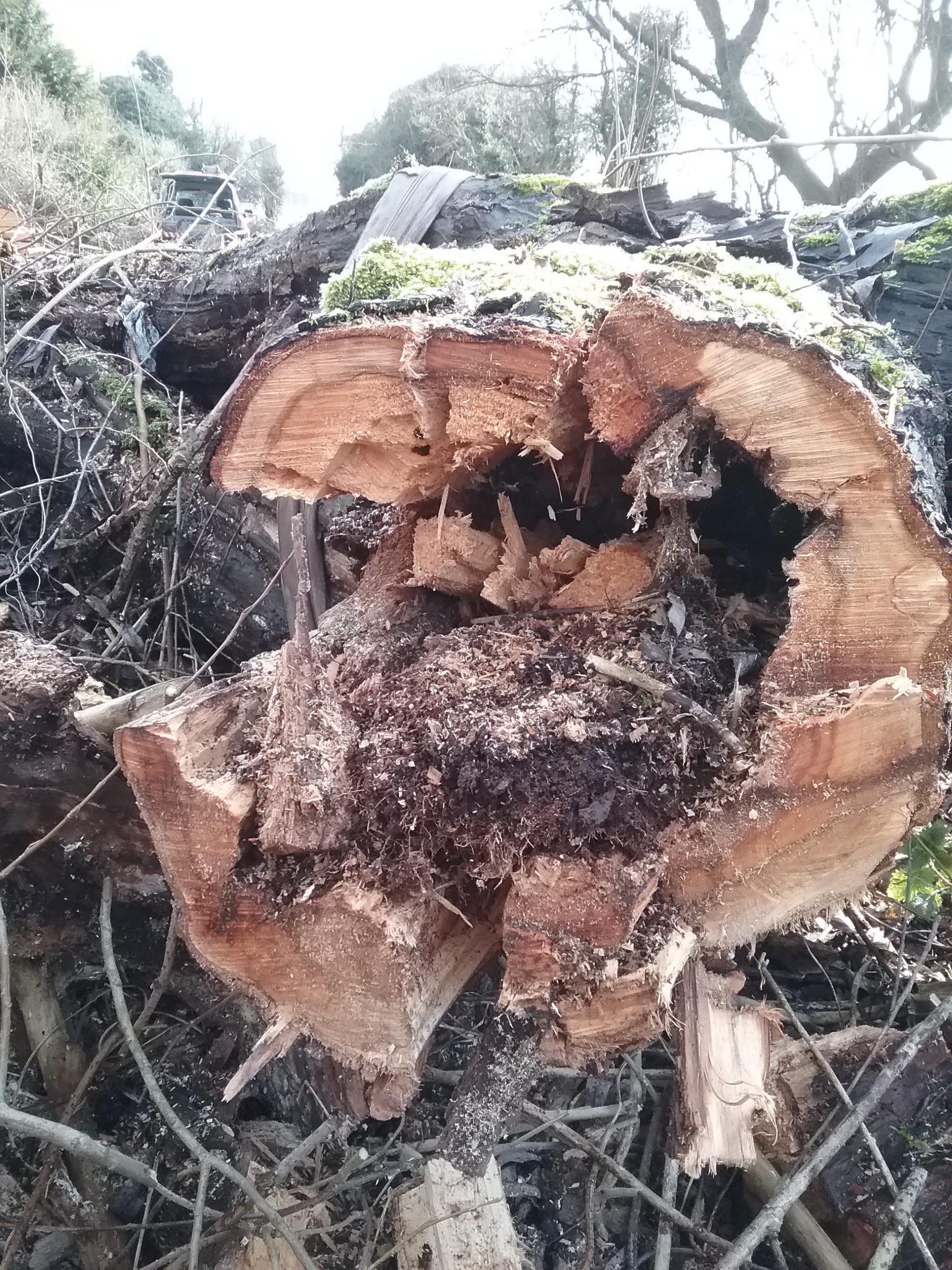The photographs below are a stark reminder of the dangers of old trees; see that the cores are almost completed rotted through, and hence there is little remaining strength left in the wood. Whilst some of the tree management activities performed may seem invasive; they are a necessary part of maintaining safe open spaces for everyone to use.